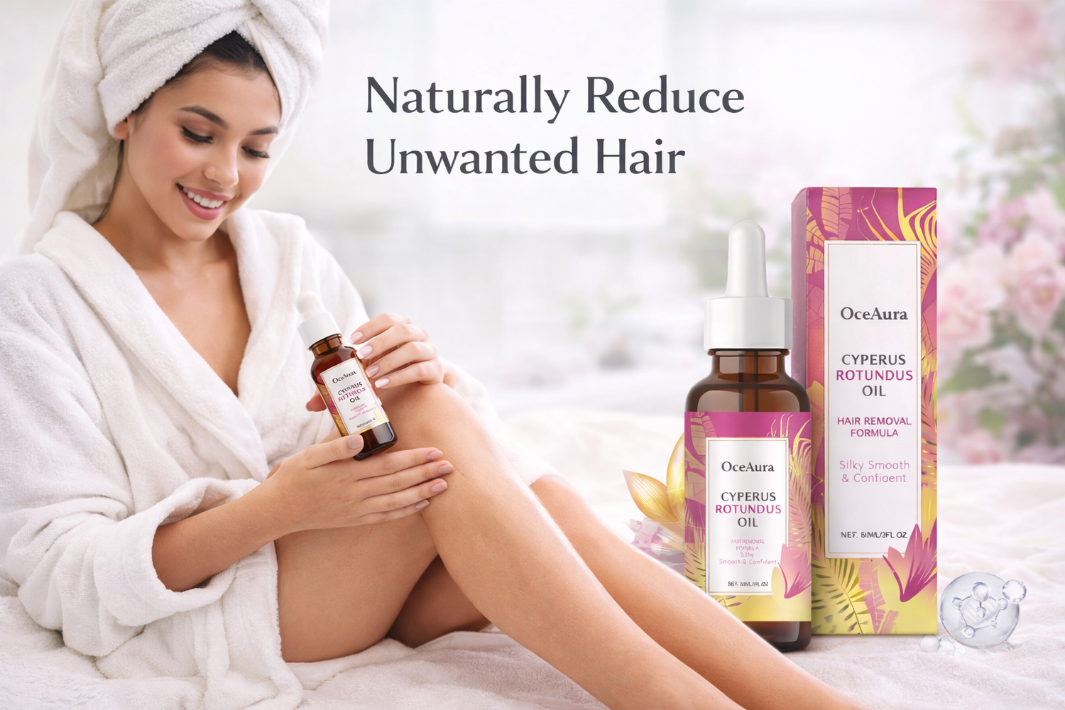 Formulated with premium Cyperus Rotundus Oil, OceAura helps slow the appearance of unwanted hair while leaving your skin feeling soft, hydrated, and radiant.Perfect for legs, arms, underarms, and sensitive areas.